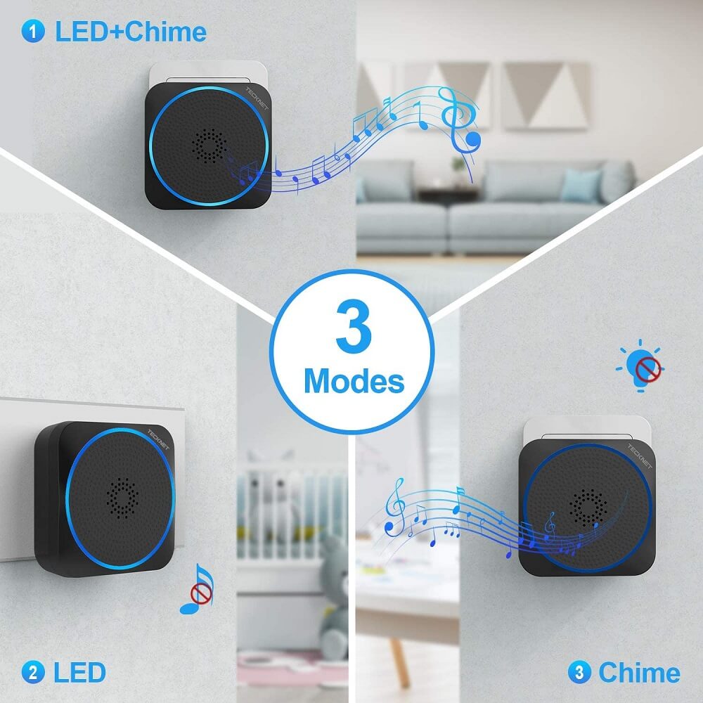 - Удобен син LED индикатор, премигващ когато някой е на вратата, отлична функция за хора с увреден слух. Приемникът може да се използва като нощна лампа, която да ви води в тъмното. Можете да изключите светлината чрез бутона "on/off’, ако е ден или ако не се нуждаете от светлина