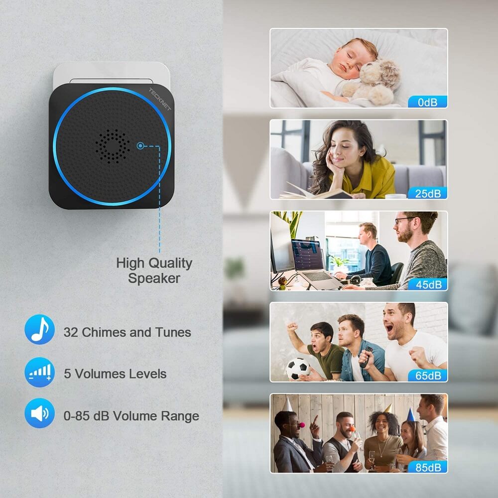 - Избор от 32 мелодии за звънене с 5 регулируеми нива на звука от 0dB до 85dB и функция за запаметяване