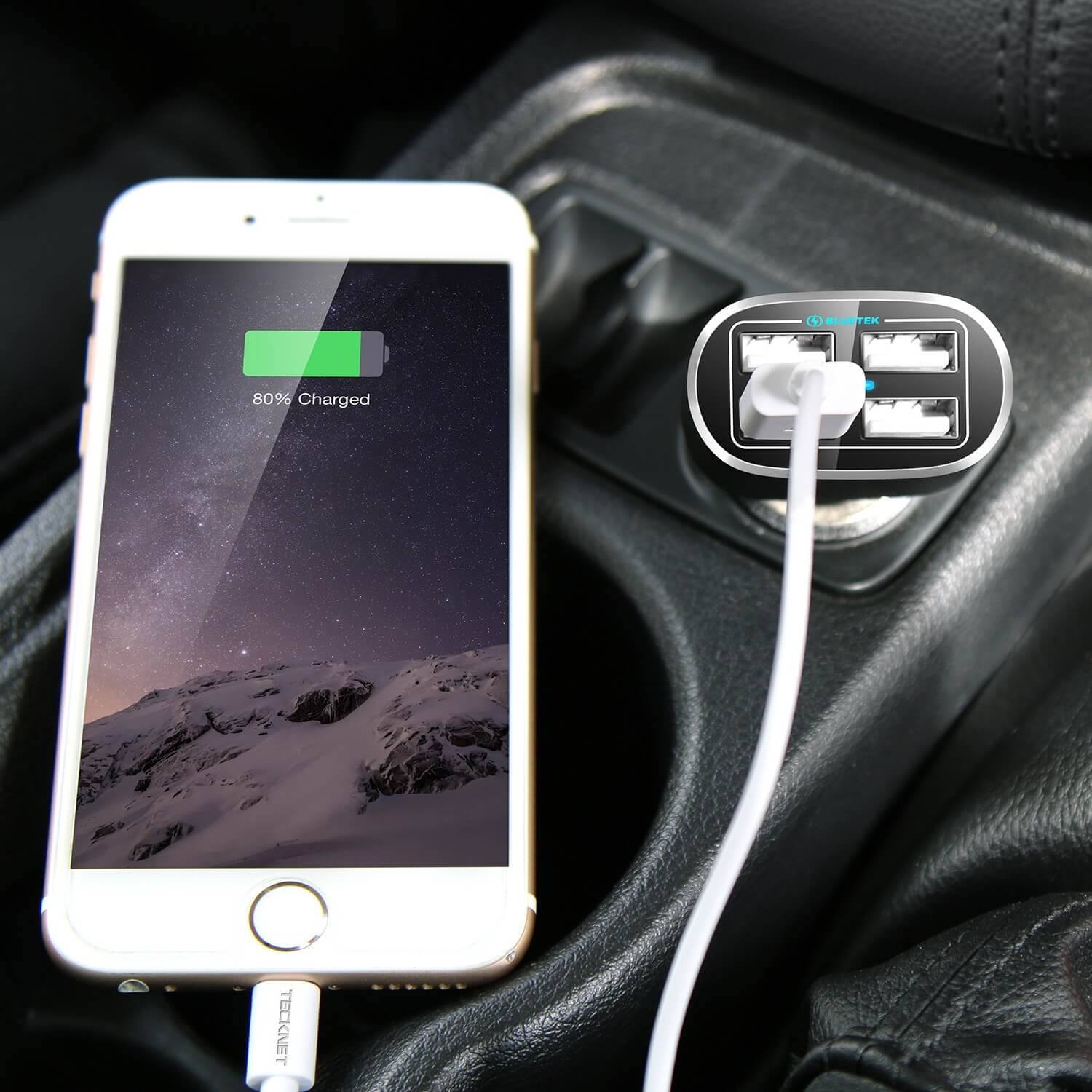 TeckNet PowerDash iEP174 D2 9.6A/48W USB Car Charger - зарядно за кола (9.6A/48W) с 4xUSB порта за мобилни устройства (черен)