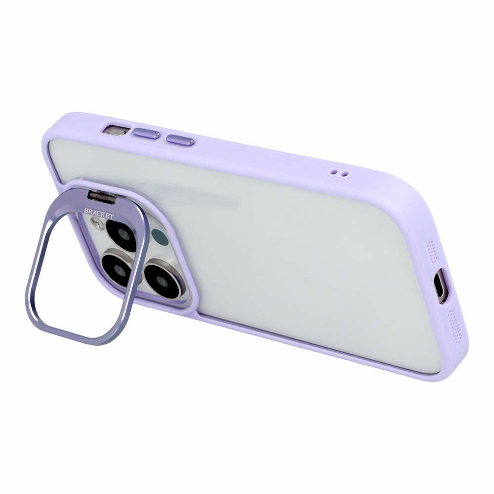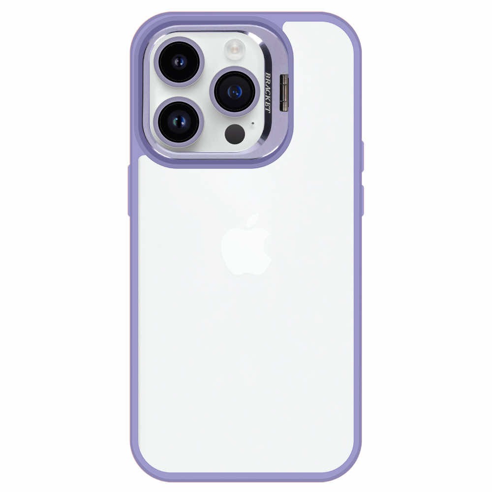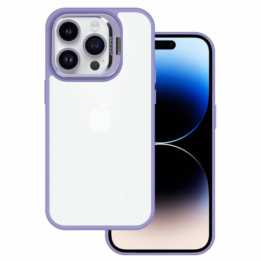 Tel Protect Kickstand Case and Camera Glass Lens - хибриден кейс с поставка и стъклени лещи за камерата за iPhone 15 Pro (лилав)