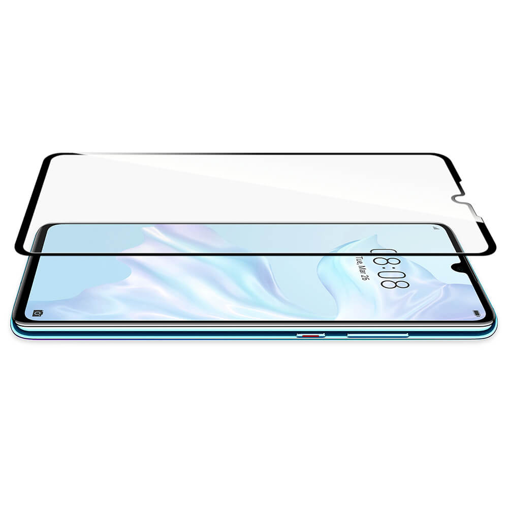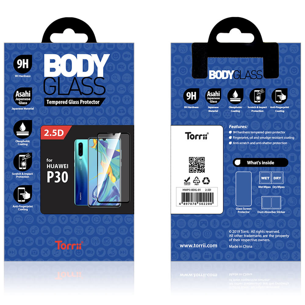 Torrii BodyGlass 2.5D Curved Edge Glass - калено стъклено защитно покритие с извити ръбове за целия дисплея на Huawei P30 (черен-прозрачен)