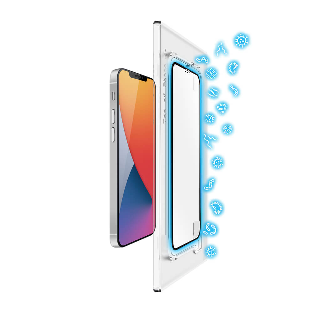 - Стъкленият протектор е с фабрично положен антибактериален слой със сребърни йони, който възпрепятства развитието на често срещани бактерии с до 99.9% успеваемост, а самият слой не се износва с времето