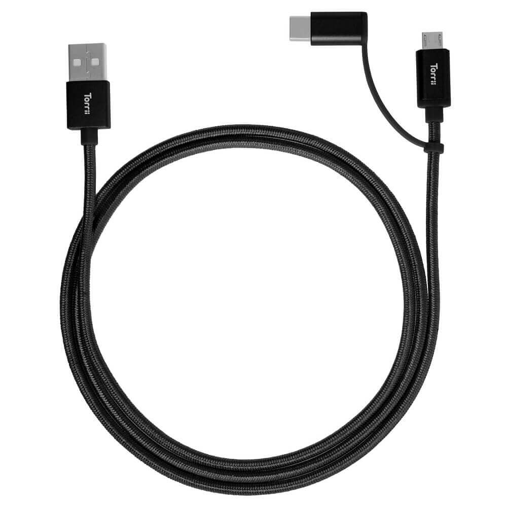 Torrii KeVable 2-in-1 Universal USB Cable (1 meter) - изключително здрав кевларен кабел за устройства с microUSB и USB-C (1 метър) (черен)