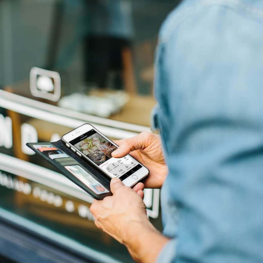 § С дизайн тип портфейл, имаш налични отделения за карти, банкноти и др. подобни