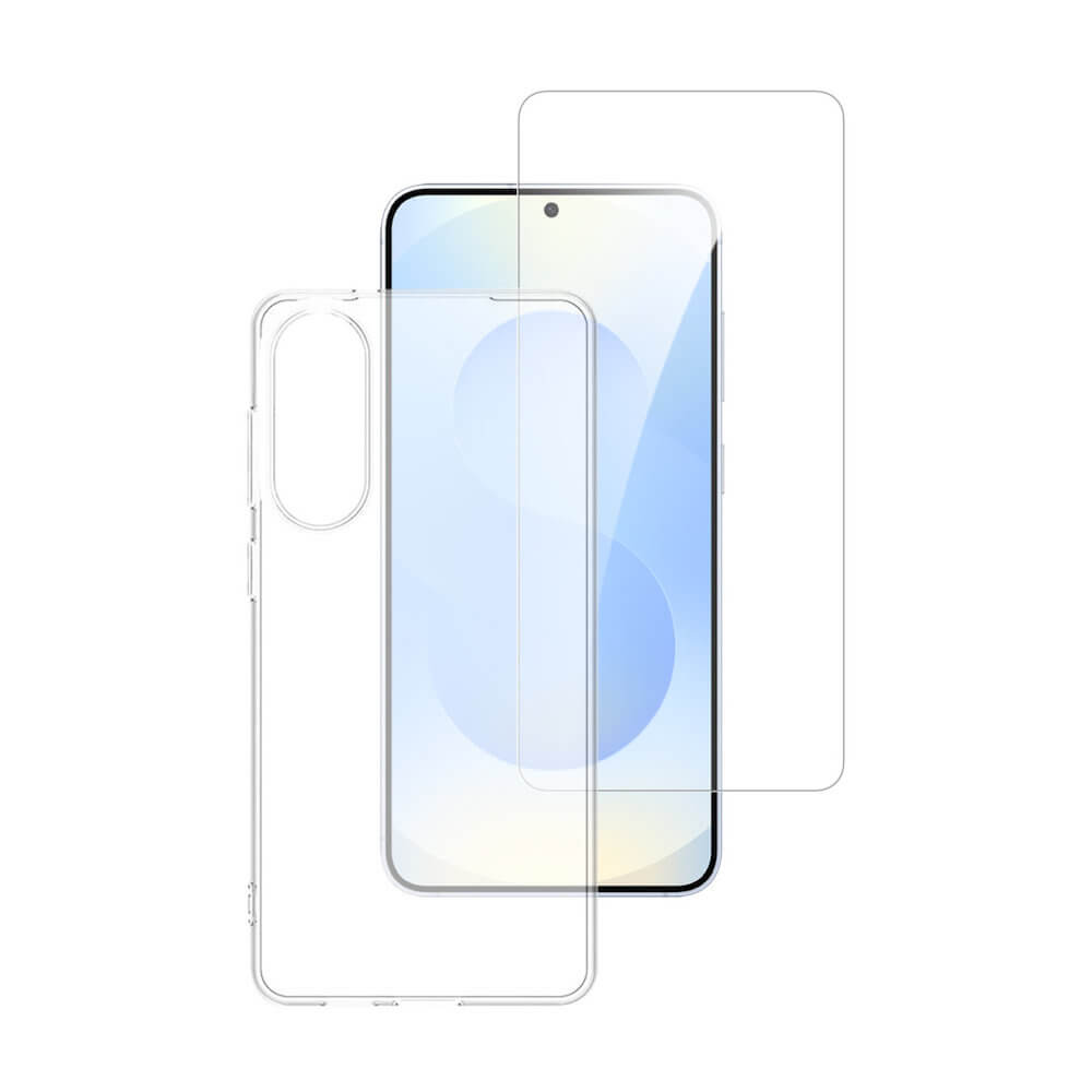 Тънък силиконов кейс и стъклено защитно покритие за дисплея на Samsung Galaxy S25 Edge - 4smarts 360° Protection Set (прозрачен)