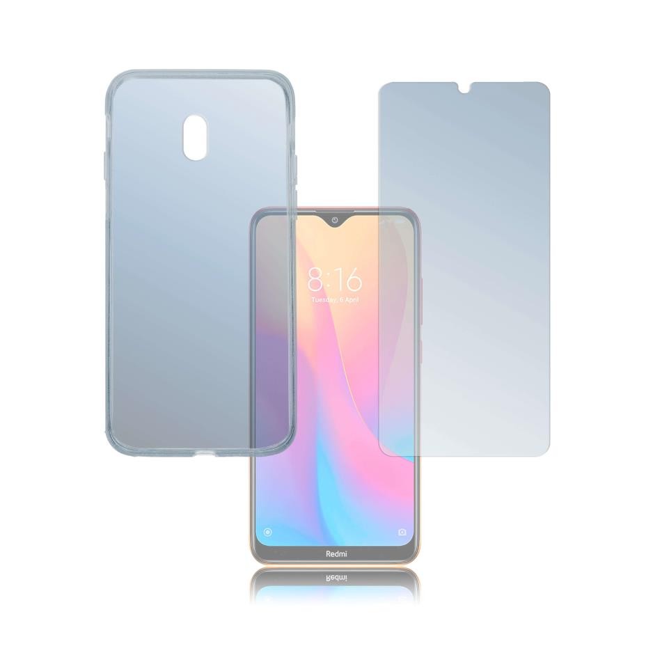 Тънък силиконов кейс и стъклено защитно покритие за дисплея на Xiaomi Redmi 8A - 4smarts 360° Protection Set (прозрачен)