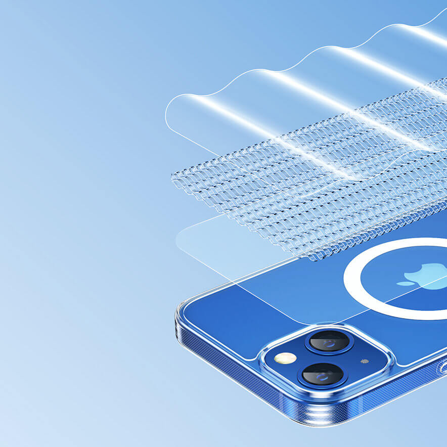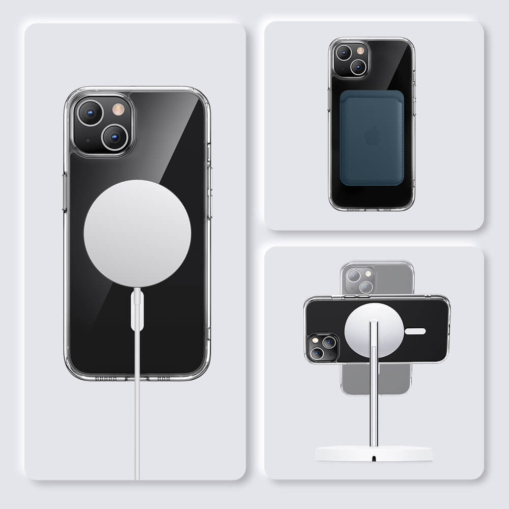 • Кейсът е снабден с магнит, благодарение на който е съвместим с MagSafe аксесоари. Това е изцяло нов стандарт за бързо и лесно свързване на аксесоари и безжични зарядни устройства