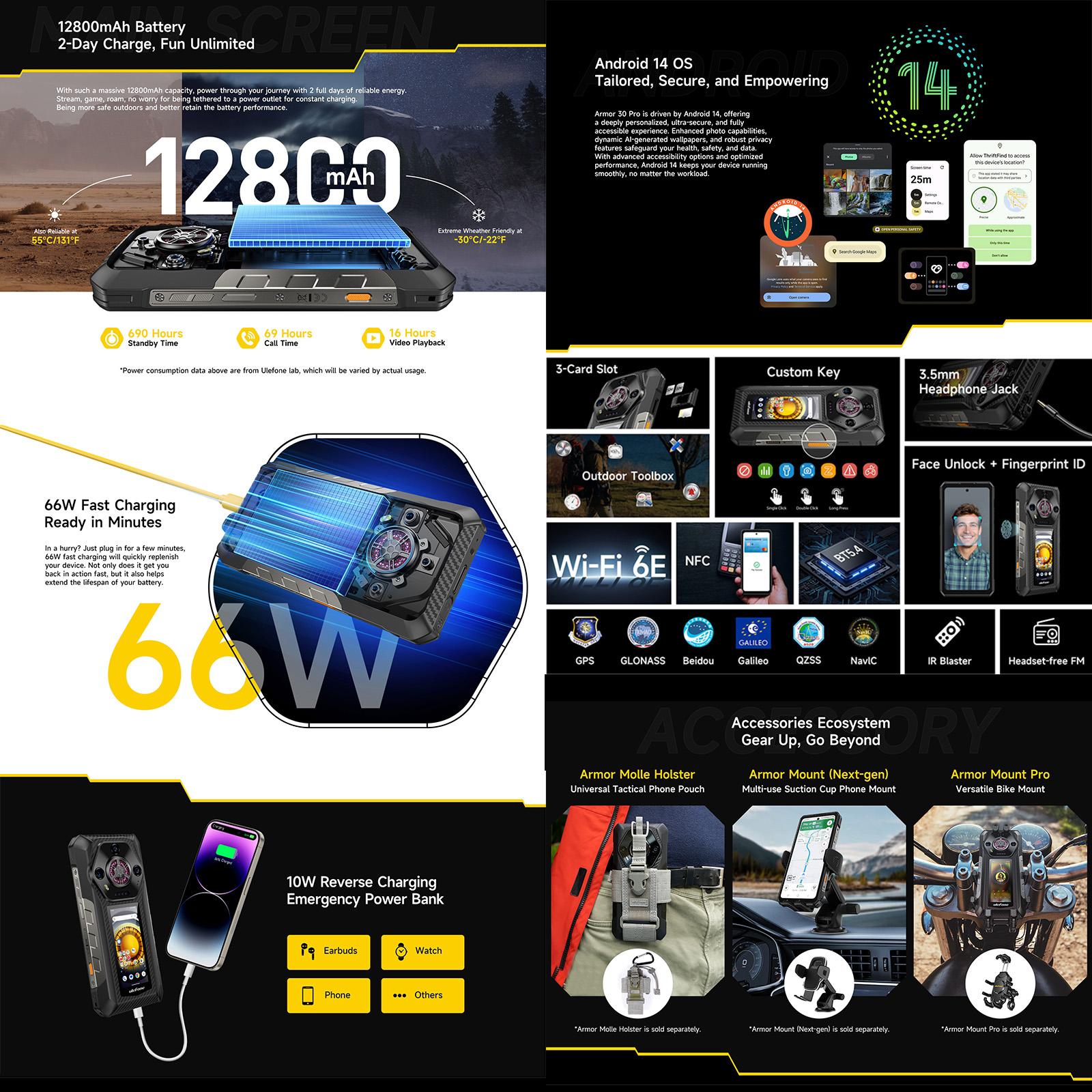 Ulefone Armor 30 Pro е върхов здрав смартфон, проектиран да издържи на най-тежките условия, като същевременно предлага иновативен двоен дисплей, огромна батерия и висока производителност.