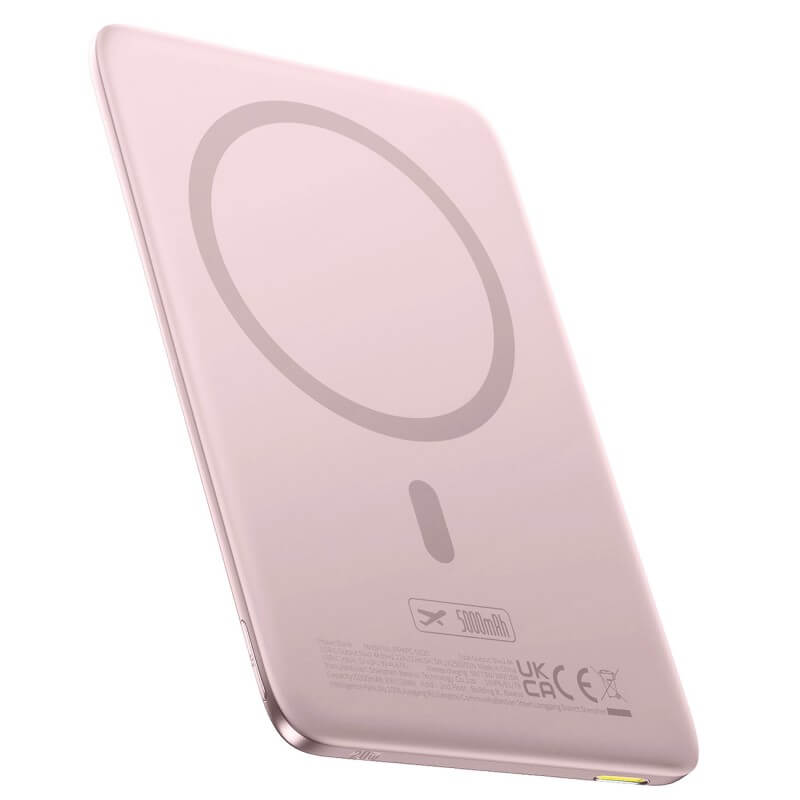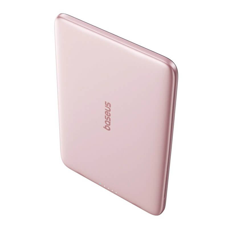 Ултратънка преносима външна батерия с USB-C изход и безжично зареждане с MagSafe - Baseus PicoGo AM41 Ultra Slim Magnetic Wireless Charging Power Bank 5000 mAh 20W (розов)