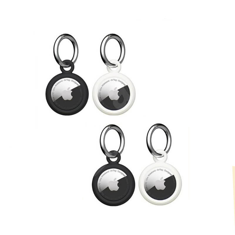 - Комплект от 4 броя (2 бели и 2 черни) силиконови ключодържатели на Urban Armor Gear, предназначени за Apple AirTag устройства