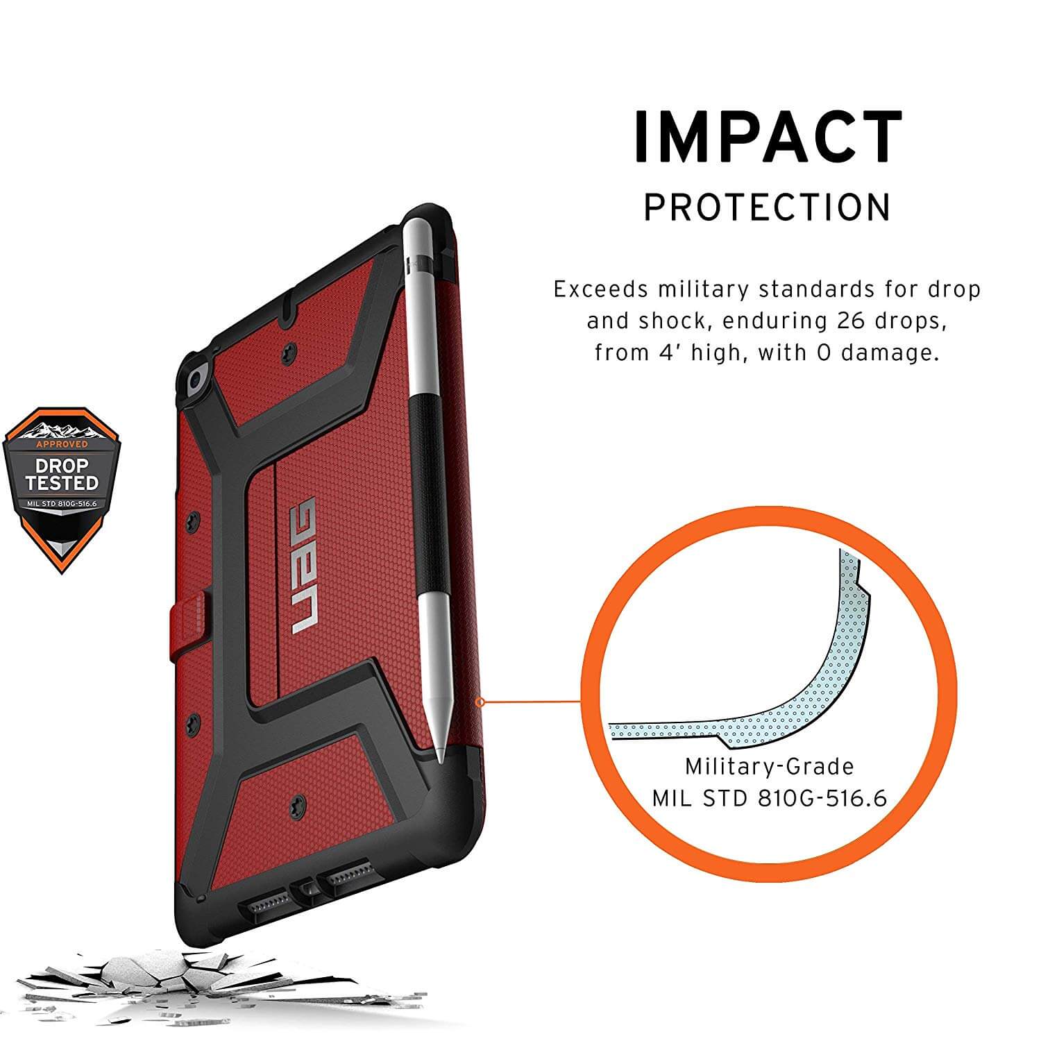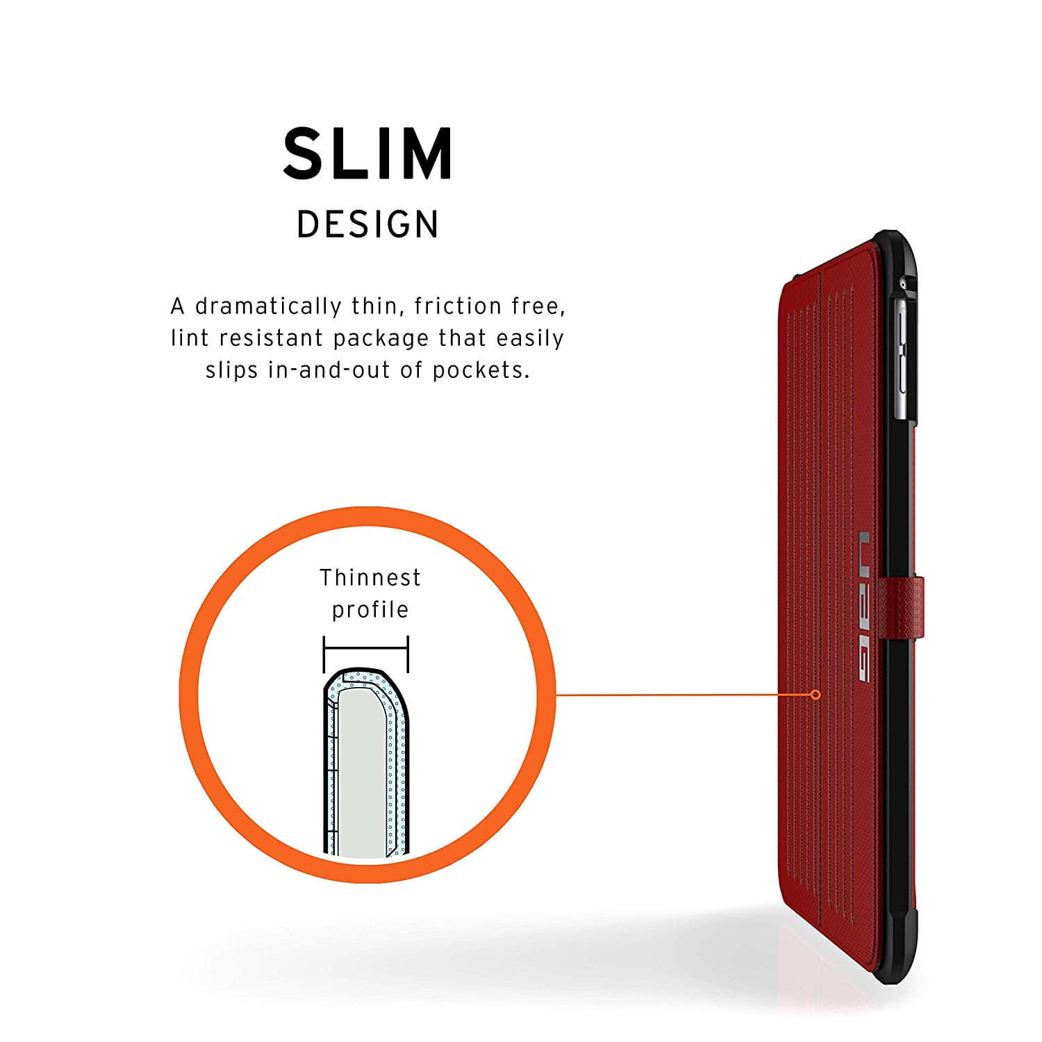 Urban Armor Gear Metropolis Folio Case - удароустойчив хибриден кейс от най-висок клас за iPad Mini 5 (2019) (червен-черен)