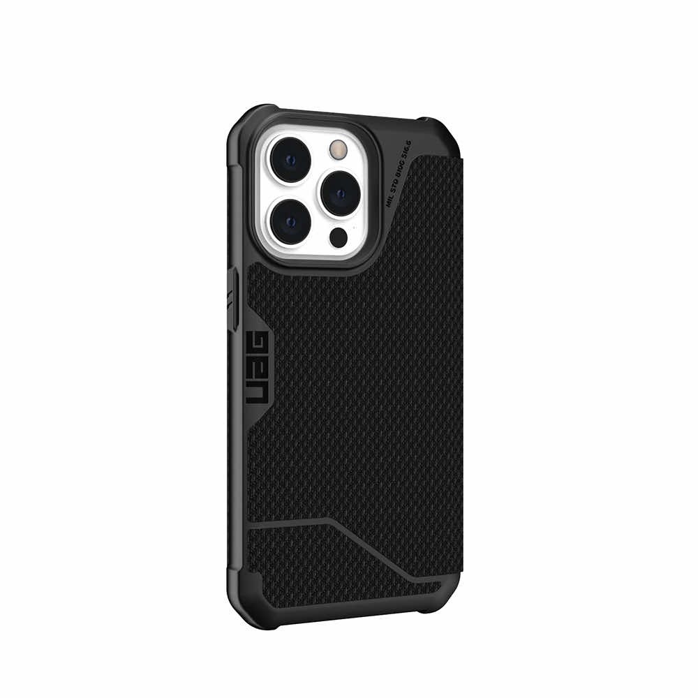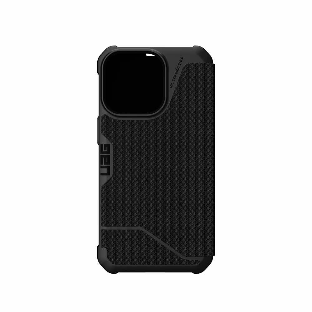 Urban Armor Gear Metropolis Folio Kevlar Case - удароустойчив хибриден кейс, тип портфейл за iPhone 13 Pro (черен)