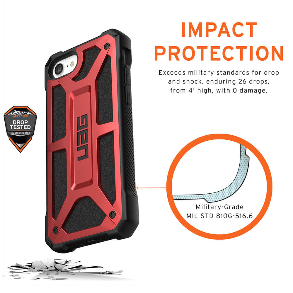 - Серията Monarch на Urban Armor за iPhone, съчетава в себе си уникален дизайн и прецизна изработка, за да покрие дори двойно, военните изисквания за защита при изпускане или случайно падане
