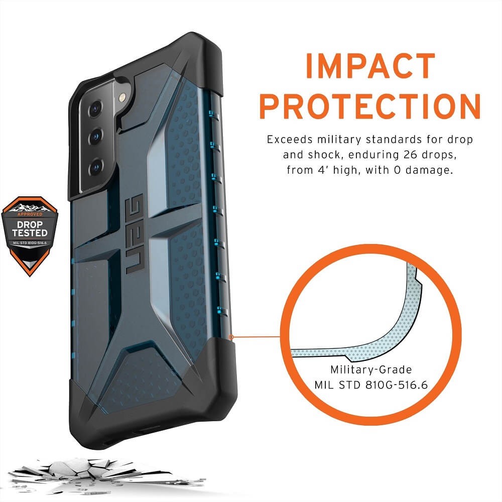 Urban Armor Gear Plasma Case - удароустойчив хибриден кейс за Samsung Galaxy S21 Plus (син-прозрачен)