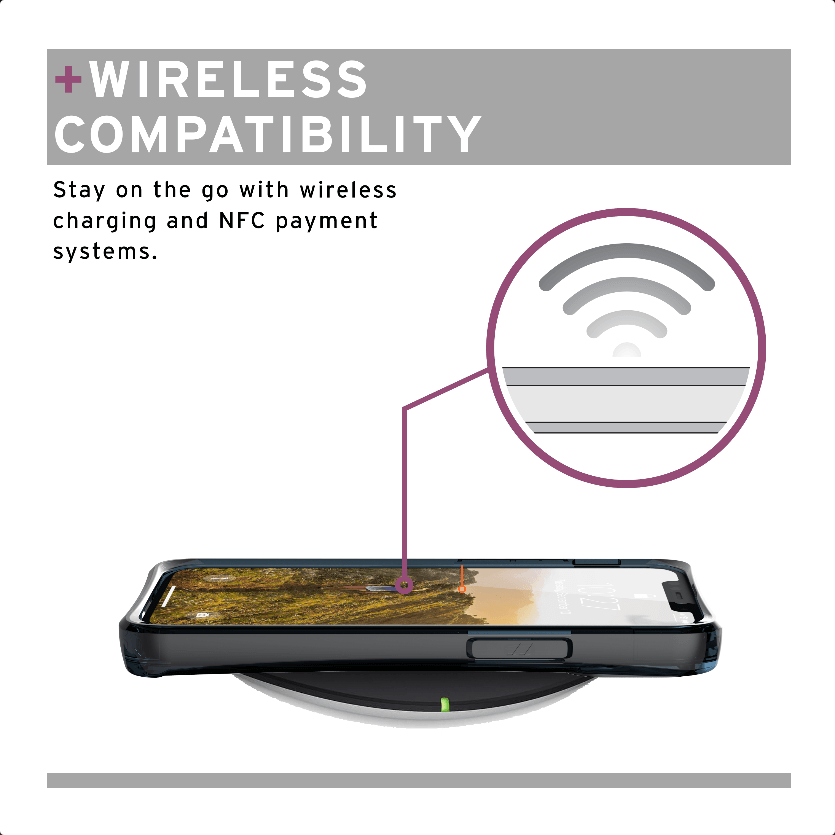 - Съвместим с падове за безжично зареждане (поддържа безжично зареждане през калъфа)