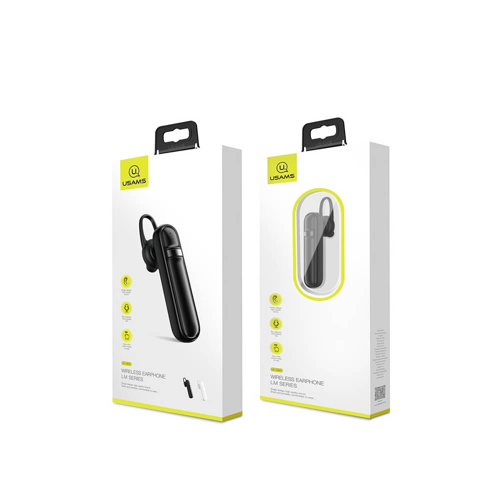 USAMS LM001 Single In-ear Bluetooth Earphone with Mic - безжична Bluetooth слушалка за мобилни устройства (черен)