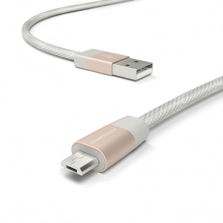 USB-A към microUSB 2.0 плетен кабел за устройства с USB-C порт (100 см) - Vonmahlen Premium Cable USB-A to microUSB (розово злато)