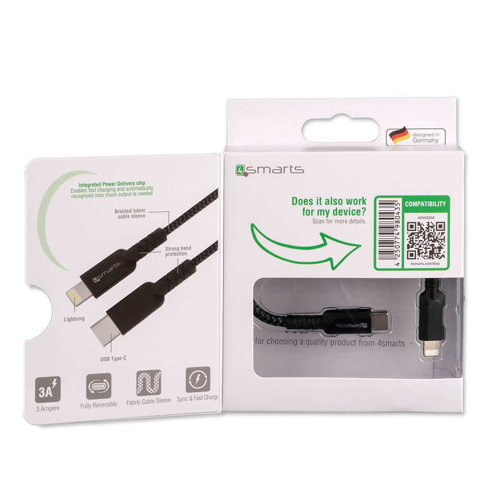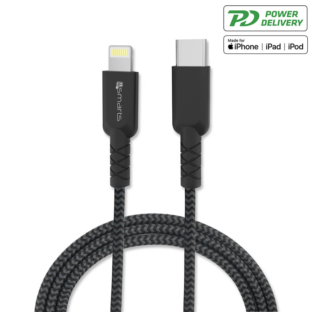 USB-C кабел към Lightning за Apple устройства - 4smarts MFI RAPIDCord PD USB-C to Lightning Cable 1m (черен)