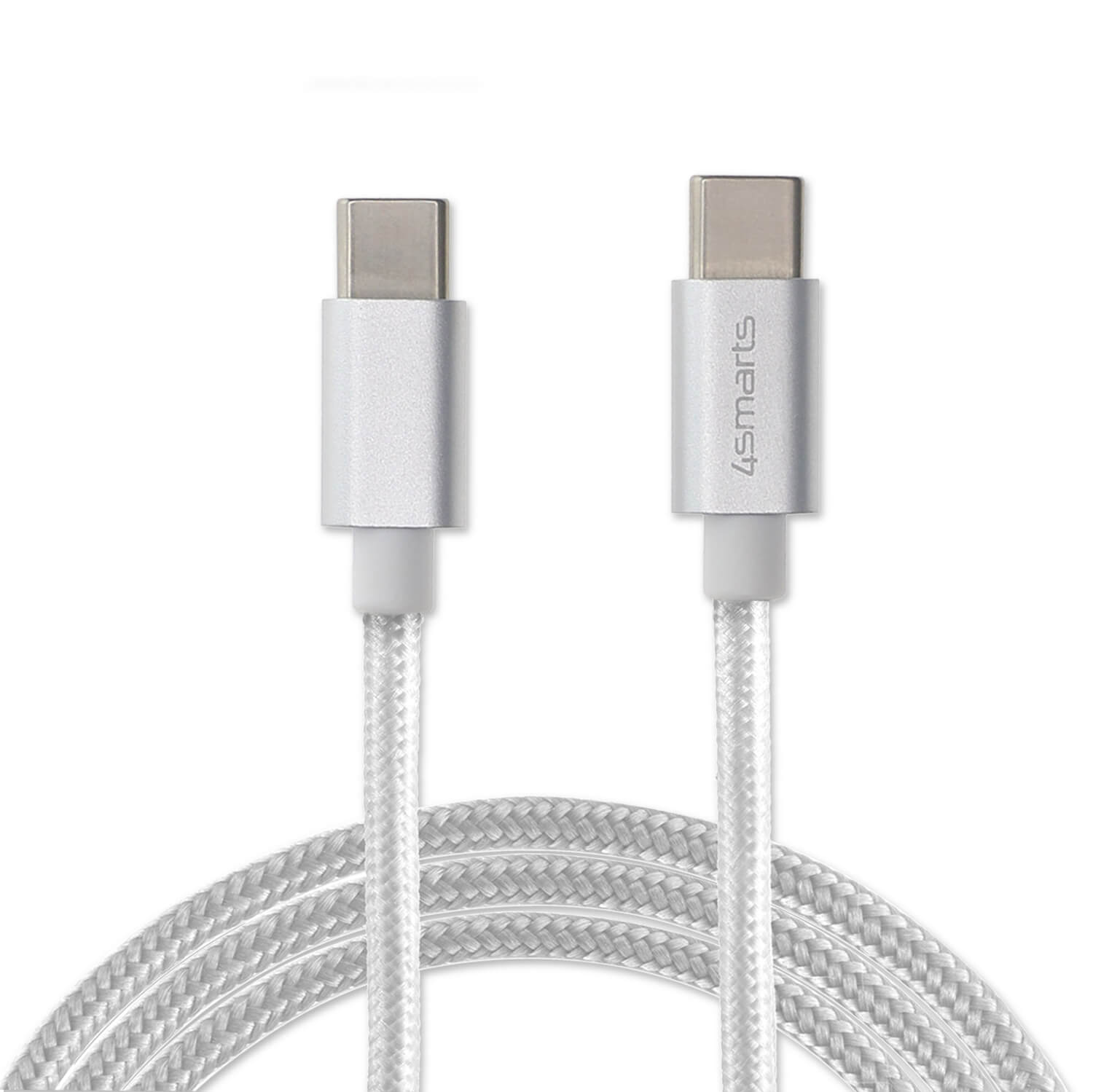 USB-C към USB-C кабел за устройства с USB-C порт (100 см) - 4smarts RapidCord USB-C to USB-C Data Cable 50W (бял)