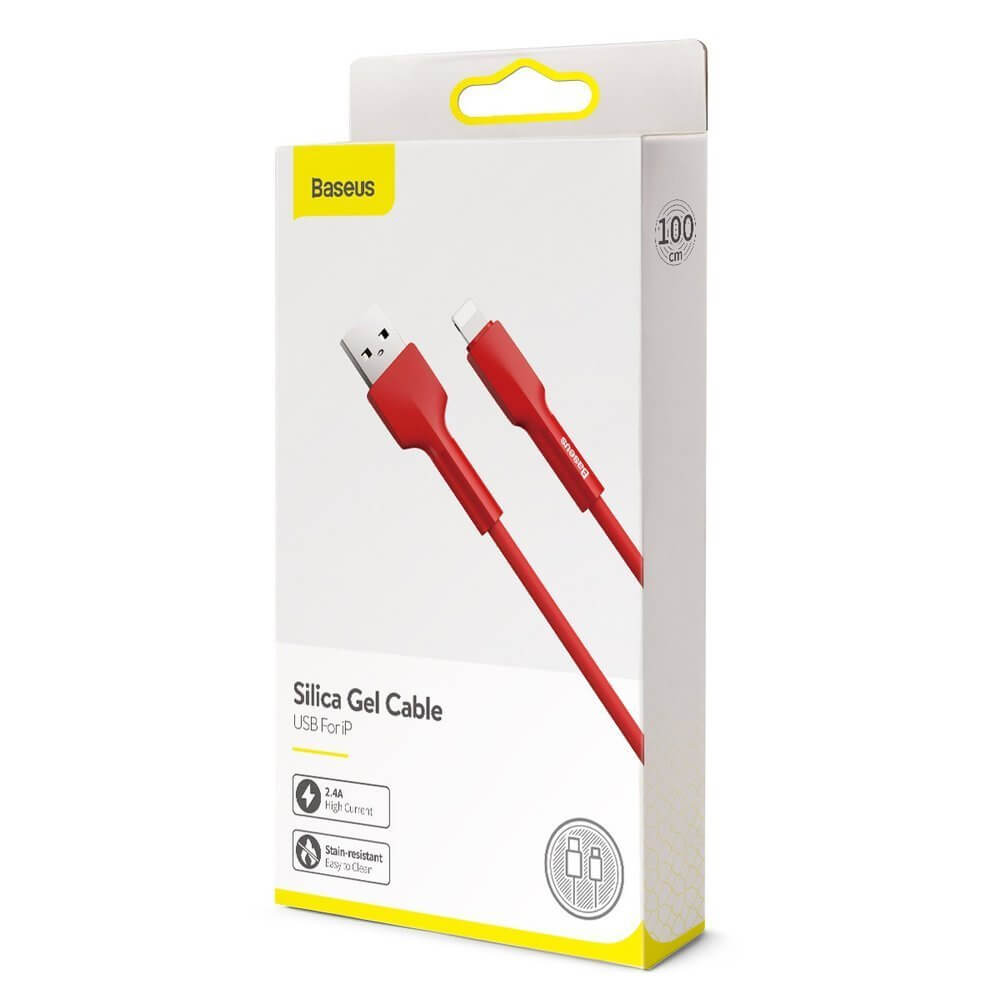 USB кабел за Apple устройства с Lightning порт (100 см) - Baseus Silica Gel Lightning USB Cable (CALGJ-09) (червен)