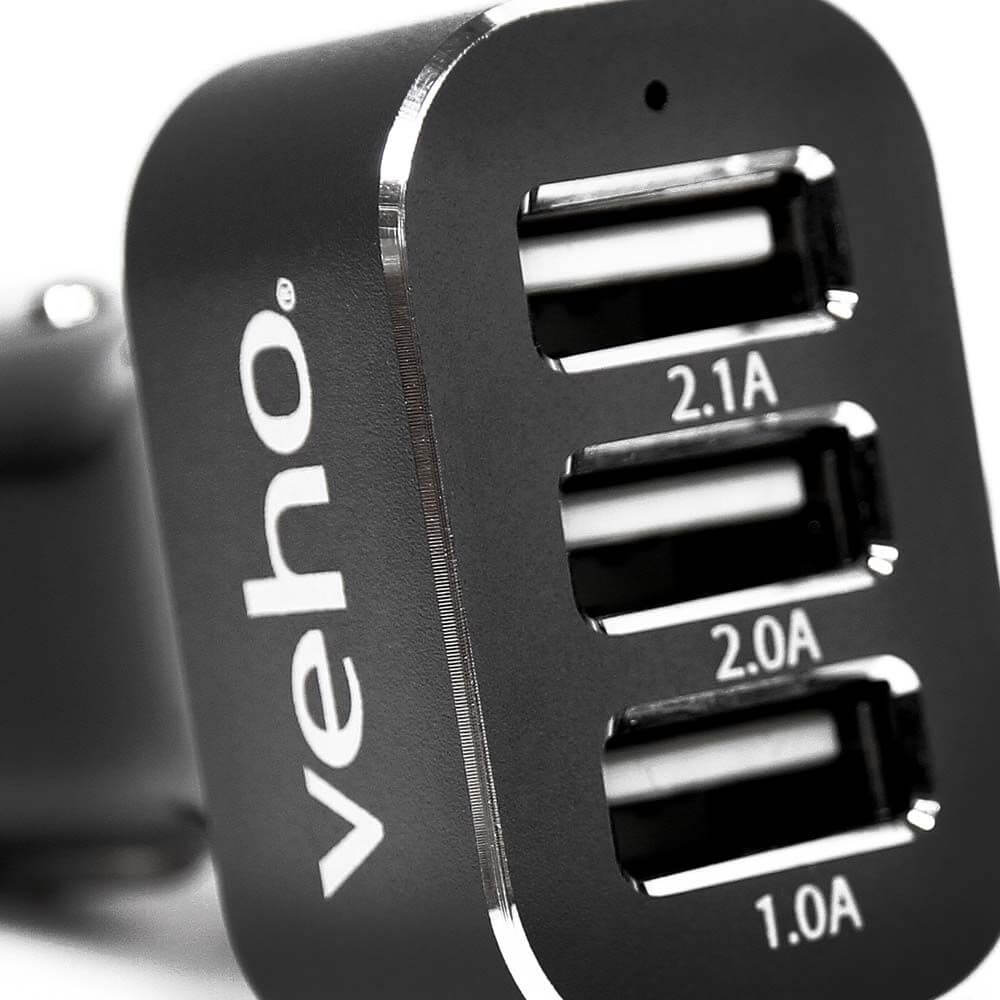 Veho Car Charger USB 5.1A - зарядно за кола (5.1 Ампера) с 3 USB изхода за смартфони и таблети (черен)