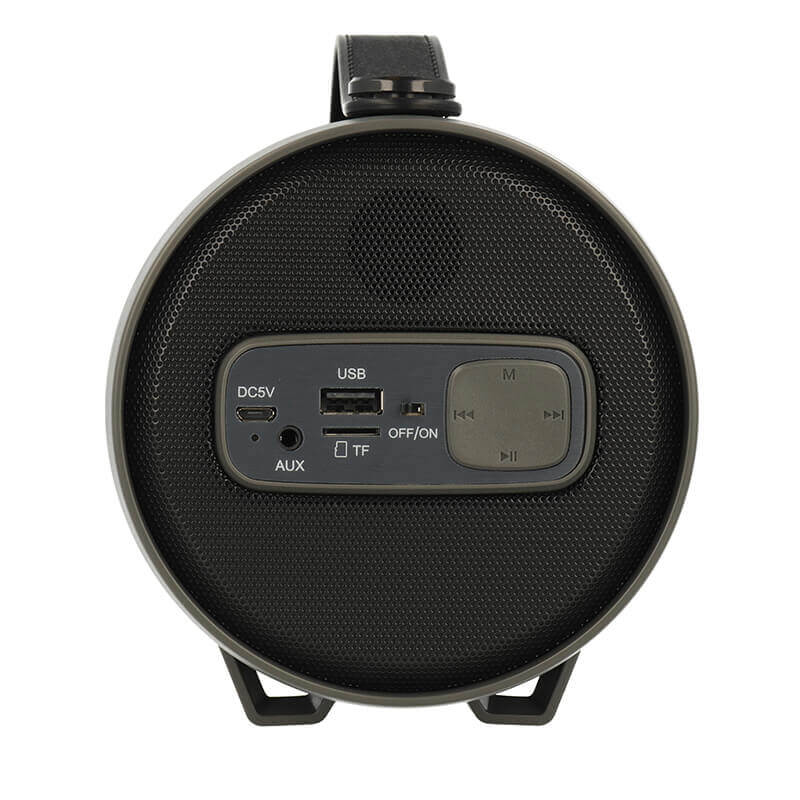 - Може да възпроизвежда безжично музика - чрез Bluetooth или жично - благодарение на AUX конектора. Високоговорителят също ви позволява да възпроизвеждате музика от външни носители като microSD карти или USB флаш памети