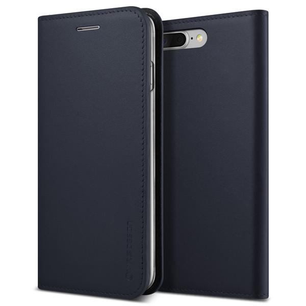 Verus Genuine Leather Diary Case - кожен калъф (естествена кожа), тип портфейл за iPhone 8 Plus, iPhone 7 Plus (тъмносин)