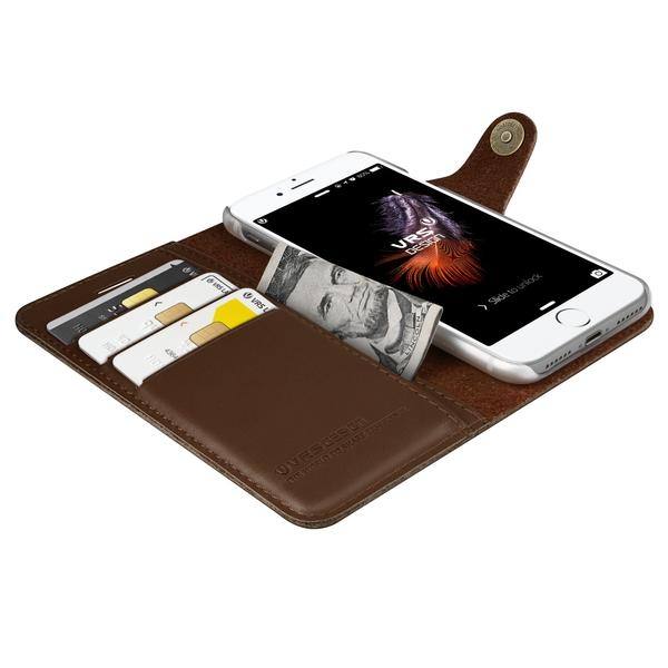 Verus Native Diary Case - кожен калъф (естествена кожа), тип портфейл за iPhone 8, iPhone 7 (тъмнокафяв)
