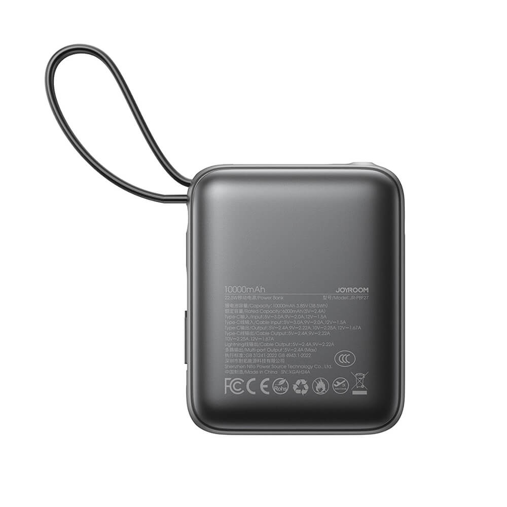 Външна батерия с вградени USB-C и Lightning кабели и USB-C порт и технология за бързо зареждане - Joyroom JR-PBF27 Portable Power Bank 22.5W 10000 mAh (черен)