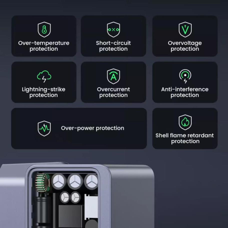 - Усъвършенстван термичен мониторинг - оборудвано с технологията Thermal Guard, зарядното устройство следи температурата в реално време, за да предотврати прегряване и да защити вашите устройства.