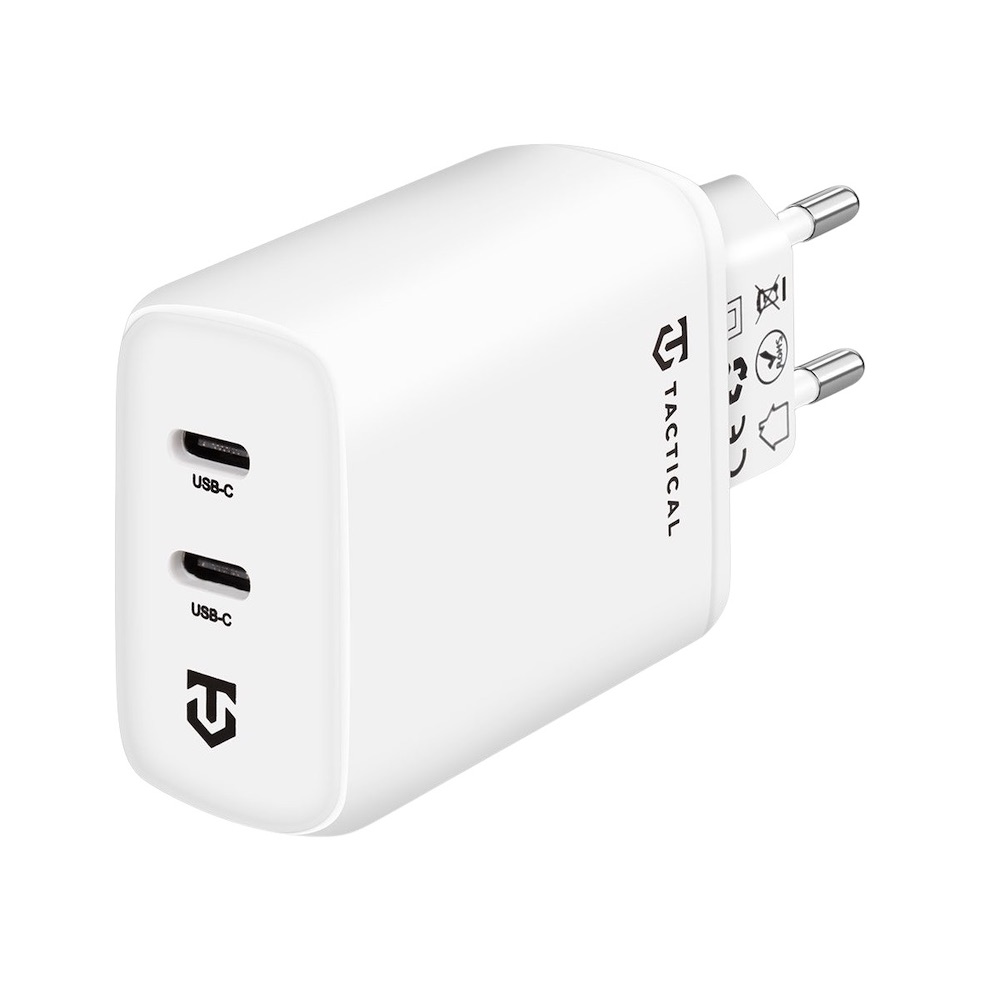 Захранване за ел. мрежа смартфони и таблети с 2xUSB-C изхода и с технология за бързо зареждане - Tactical Base Plug Dual Travel Wall Charger 40W (бял)