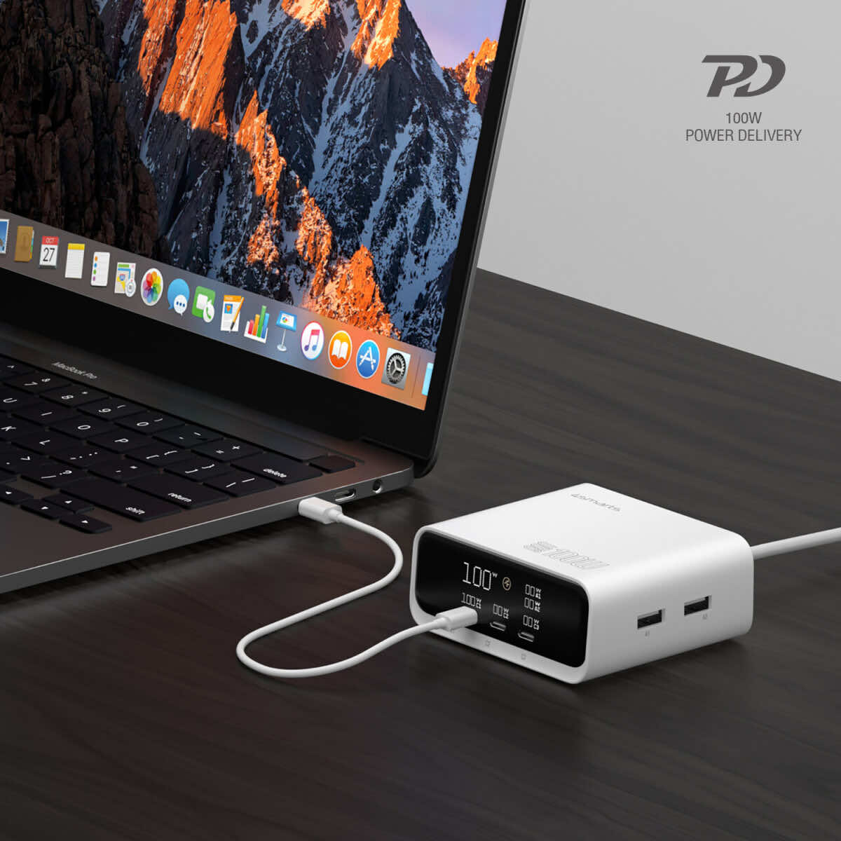- Възможност за зареждане и на MacBook с мощност до 100W чрез единия USB-C порт