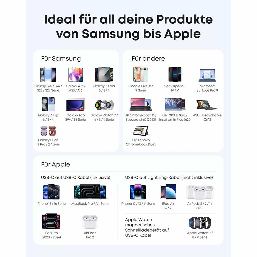 - Съвместимост: всички мобилни устройства, които се нуждаят от мощност до 45W, със съответния за тях кабел