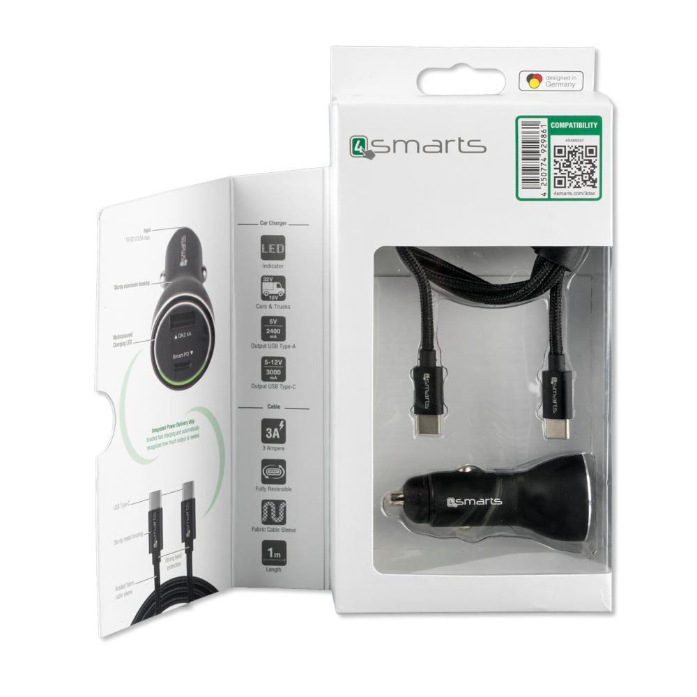 С 4smarts Fast Car Charger Set вие получавате мощно и ефективно зарядно устройство, което е идеално за новите поколения смартфони и други устройства. Този комплект е перфектният избор за бързо зареждане по време на пътуване.