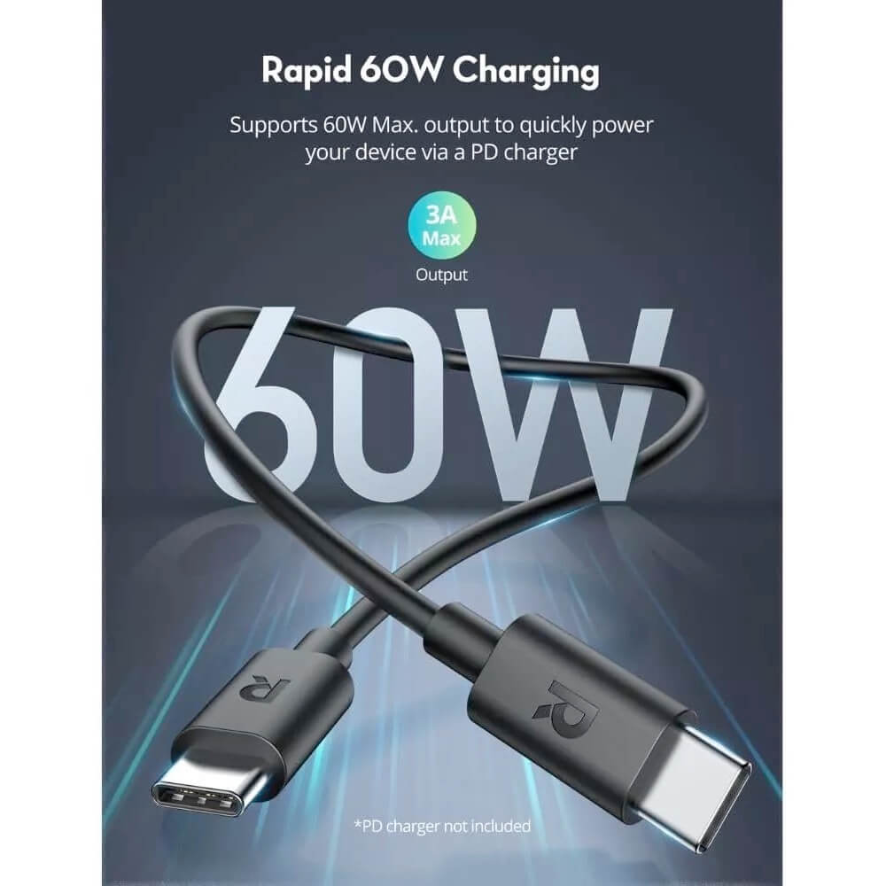 - В комплекта: 1 х RavPower RP-CB1021 USB-C to USB-C Cable 60W