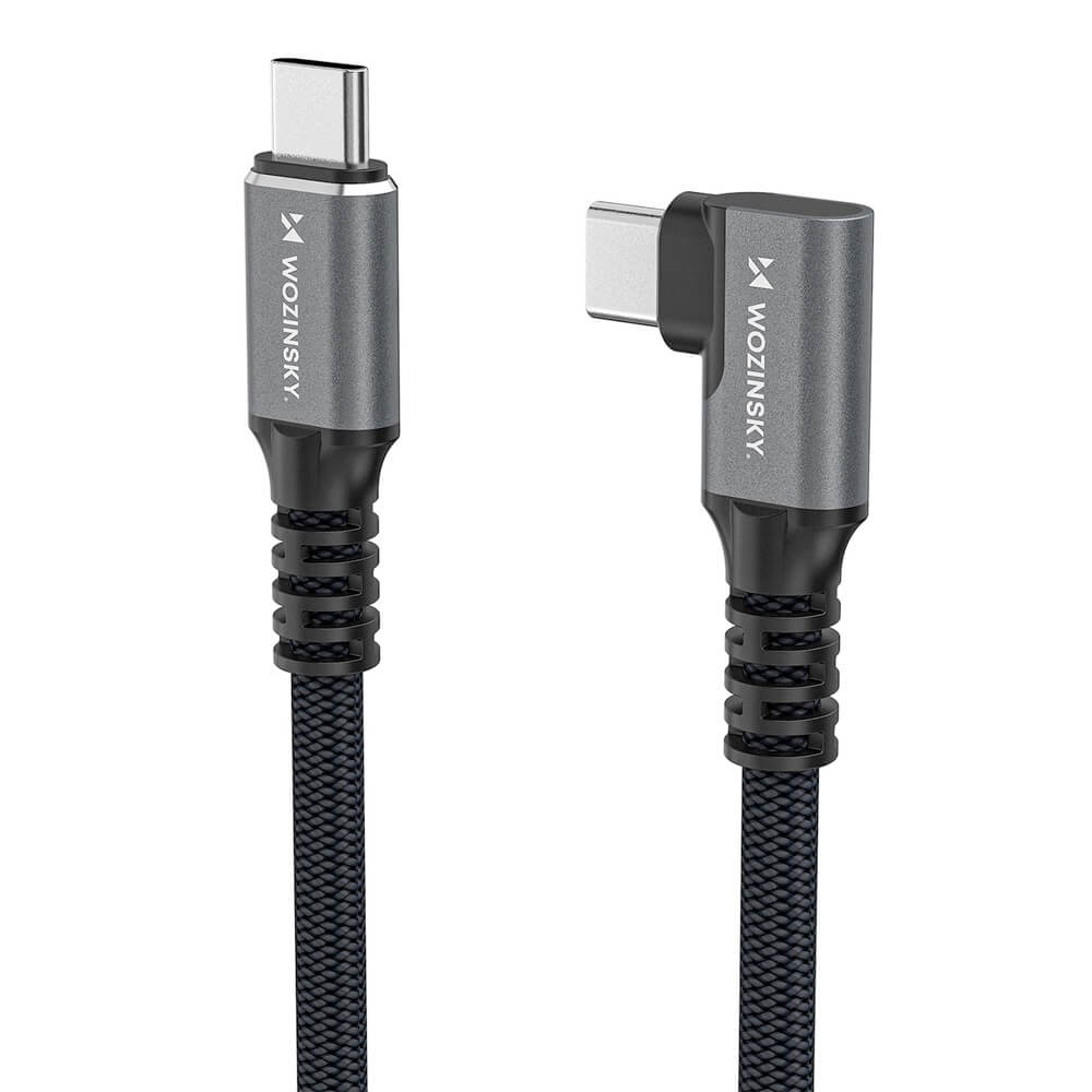 Здрав USB4 кабел с Thunderbolt 4 за устройства с USB-C порт - Wozinsky Thunderbolt 4 USB4 USB-C to USB-C Angled Cable 240W (черен) (150 см)