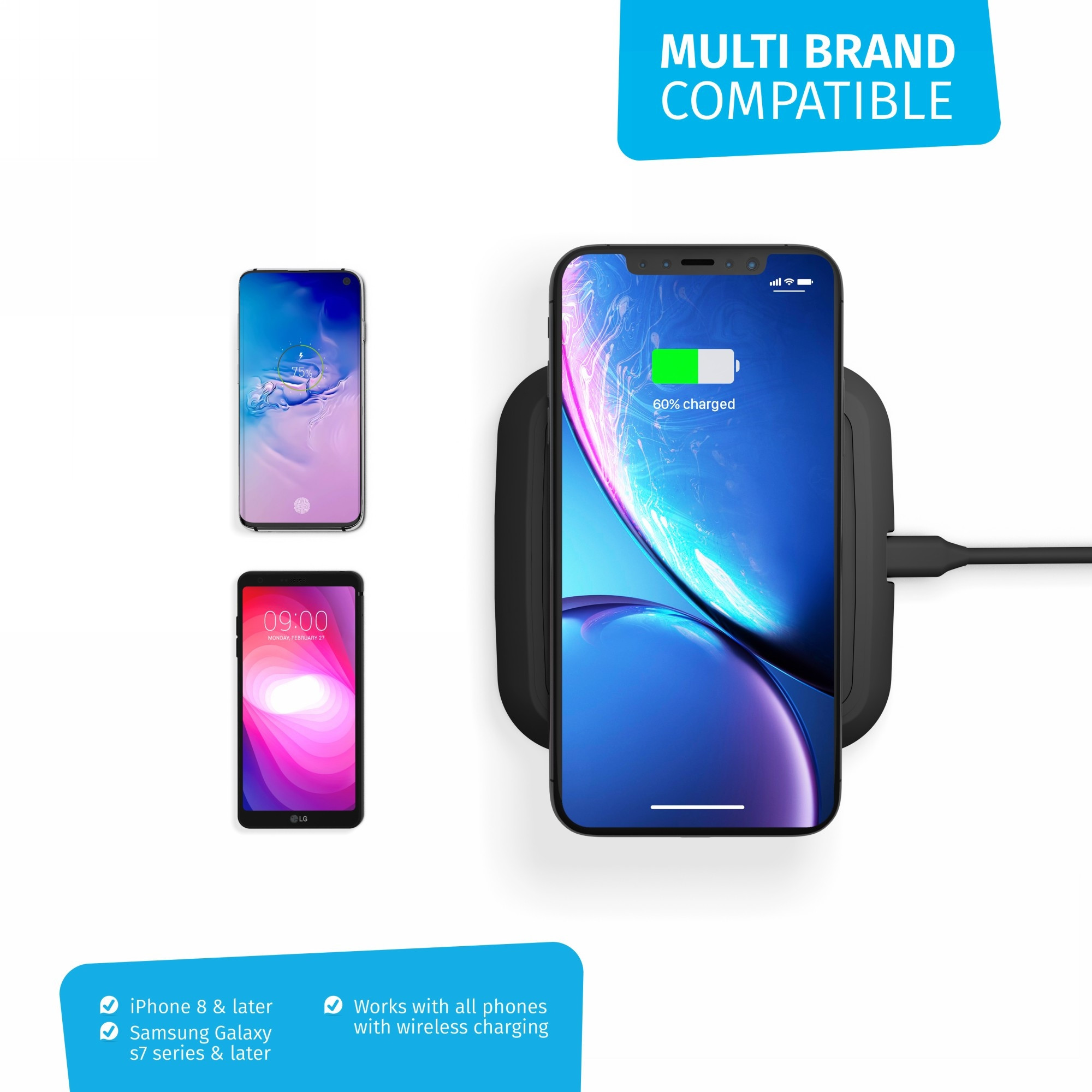 - Позволява ви да зареждате всеки смартфон с Qi стандарт за безжично зареждане без заплитането на зареждащи кабели - просто поставете Qi устройството си в областта за зареждане и зареждането ще започне автоматично